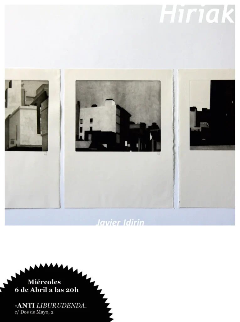 El 6 de abril de 2016 celebré en ANTI Liburudenda la inauguración de la exposición HIRIAK, una muestra compuesta por 12 estampas y un dibujo mural, centrada en el paisaje urbano y la arquitectura como tema principal.
